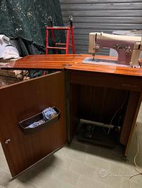 In vendita macchina da cucire vintage NECCHI modello 267, completa di mobile originale in legno con piano richiudibile e prolunga laterale.