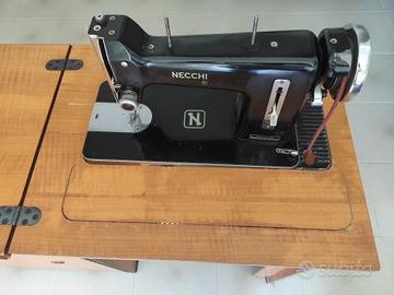 MACCHINA DA CUCIRE NECCHI, BF Serie NOVA, Made in Italy, funzionante (da sostituire la cinghia). a scomparso con mobile originale (da restaurare)!