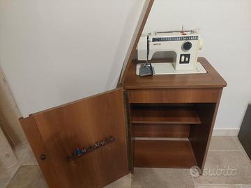 Quasi nuova, con vari possibilità di punti, anche per ricamare e asole. Completa di accessori Mobiletto in legno