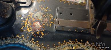 ☢️Vendo bellissima macchina da cucire d’epoca, solo un po' radioattiva, ma di fine '800/primi '900, a manovella, con decorazioni floreali dorate e intarsi in madreperla originali perfettamente integri.
