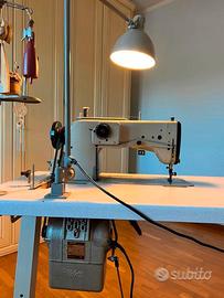 Macchina da cucire professionale Bernina modello 217, nota per precisione, robustezza e affidabilità.