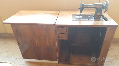 macchina da cucire Singer con telaio in ferro più in legno . macchina funzionante.