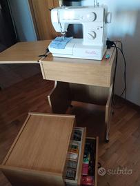 vendiamo macchina da cucire con sedile carellato porta oggetti ,con fili ect.