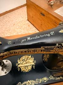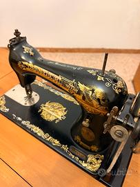 Vendo macchina da cucire Singer d’epoca, completa di mobile originale e pedaliera. Decorazioni in oro ben conservate, meccanica completa e struttura solida. Perfetta come pezzo da collezione, arredo vintage o per appassionati di cucito.
