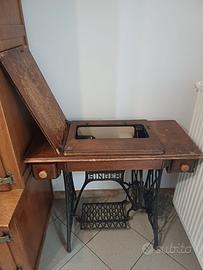 Montata su mobile originale in legno massello con struttura in ghisa, il meccanismo a pedale è perfettamente funzionante, il mobile in legno presenta, in alcune parti, i normali segni del tempo.