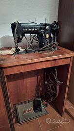 Macchina da cucire Singer modello 306M con mobile, elettrica e a pedale, funzionante.