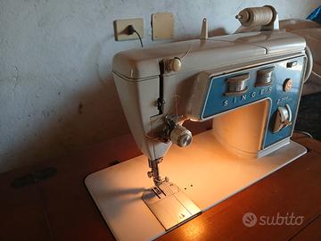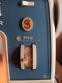 La macchina da cucire, una Singer 706, è perfettamente funzionante, in ottimo stato; dispone di pedale ed all'interno è presente anche la pedaliera, ma non la cinghia; come si vede in foto anche la luce sulla zona di lavoro è funzionante.
