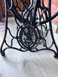 Macchina da cucire Singer funzionante a pedale, modello vintage con base in ghisa decorata e piano in legno massello. Perfettamente conservata, ideale per collezionisti, appassionati di cucito o come arredo retrò. Ritiro a mano, no perditempo