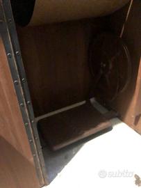 mobiletto in legno con macchina da cucire singer anni 50/60 funzionante, utilizzabile mediante pedale in ferro e cinghia.