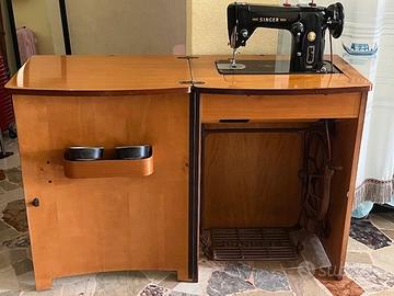 Macchina da cucire SINGER, funzionante, usata pochissimo, con pedale e mobiletto a scomparsa.