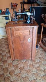 Vecchia macchina da cucire Singer a pedale con mobiletto