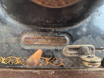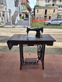 Condizioni: La macchina si presenta in buone condizioni generali per l'età. La struttura del mobile in legno va restaurata a pedale è completa. La macchina non è stata testata per il cucito, è venduta come oggetto da collezione/arredo o da restaurare. Il mobile ha evidenti segni del tempo sul piano.