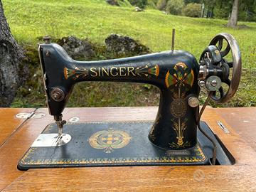 Vendo macchina da cucire Singer originale, montata su mobiletto in legno con base in ghisa decorata e pedaliera funzionante. Un pezzo iconico, ideale per collezionisti, amanti del vintage o come arredo dal fascino senza tempo.