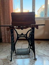 Vendo macchina da cucire Singer antica, completa di mobiletto in legno massello e struttura in ghisa a pedale.