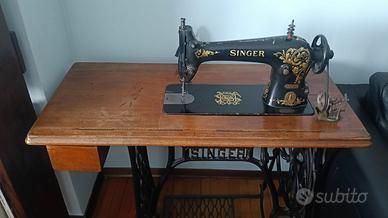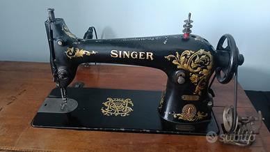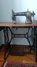 Introvabile e bellissima macchina da cucire Singer molto vecchia, vintage. Difficile da trovare in queste condizioni. La base è in ferro, il ripiano in legno sul quale è appoggiata la macchina. Probabilmente anche funzionante ma non si garantisce il funzionamento. Consegna a mano gratuita in Chieri e vicinanze.