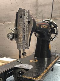 Bellissima macchina da cucire Singer, per appassionati o restauratori. In buono stato ma presenta una crepa sulla base e una rottura sul volano posteriore come si vede in foto.