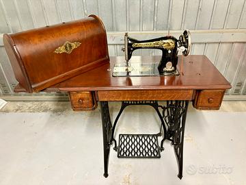 Utilizzata come elemento d’arredo. Non posso garantire in alcun modo la cucitura anche se la parte meccanica della macchina funziona. Da verificare.