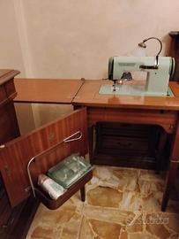 Vendo macchina da cucire Elna originale anni ’70, completa di mobiletto in legno richiudibile.