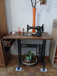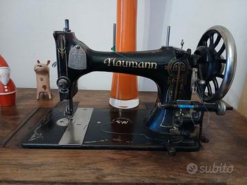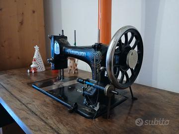 Macchina da cucire a pedale, marca Naumann (Dresda, Germania), inizio '900. Struttura in ghisa e piano in legno. Condizioni perfette. Funzionante. Splendida per arredamento. Base 84x44, altezza 75 cm. È possibile vederla a Trento.