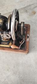 macchina da cucire vintage con custodia in legno, buone condizioni. non so se è funzionante, ottima per arredo negozi o anche in casa. Difetti vedi foto