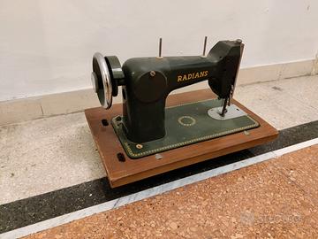 Vendo bellissima macchina da cucire d'epoca marchio Radians, color verde petrolio/scuro originale. L'oggetto si presenta in buone condizioni estetiche, con una splendida patina vintage e decalcomanie dorate sulla base ancora ben visibili. Stato: Non testata, venduta come oggetto da esposizione o per collezionismo. Stile: Perfetta per arredamento in stile Industrial, Vintage o per vetrine di negozi. Dettagli: Struttura solida in metallo pesante, completa di volano e particolari cromati. Dimensioni: 45x29 cm Ritiro a mano a Roma, zona Cipro