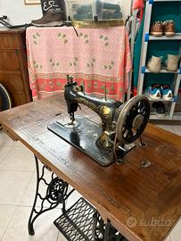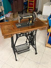 Vendo bellissima macchina da cucire vintage Stucki, completa di mobile originale in legno e struttura in ghisa con pedale. Si tratta di un autentico pezzo d’epoca, ideale sia per utilizzo che come elemento d’arredo in stile vintage/industriale. ✔ Marca storica Stucki ✔ Meccanismo a pedale originale ✔ Struttura in ghisa solida e resistente ✔ Mobile in legno con cassetto ✔ Decorazioni originali dorate ancora visibili ✔ Ottima per collezionisti o arredamento La macchina è in buone condizioni considerando l’età: presenta segni del tempo che ne testimoniano l’autenticità, ma mantiene tutto il suo fascino originale. ⸻ 📐 Dettagli: •Marca: Stucki •Tipologia: macchina da cucire manuale a pedale •Materiali: ghisa + legno •Epoca: primi/metà ‘900 (stimata) •Stato: usata, ben conservata ⸻ 📍 Info e ritiro: Possibilità di visione senza impegno Ritiro a mano Casalpusterlengo