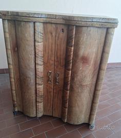 • Mobiletto: Design unico con frontale curvo e venature del legno a vista. Include 4 cassetti interni a scomparsa originali.