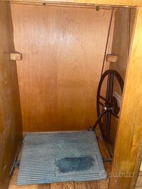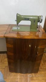 Vendo rara macchina da cucire d'epoca marchio Visetta, un classico del design industriale italiano anni '50. La macchina è inserita nel suo mobiletto originale a scomparsa, caratterizzato da una splendida finitura in legno di radica con venature a contrasto.