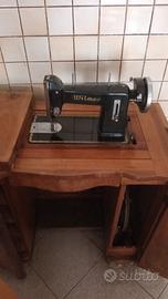 Macchina da cucire Wilmer anni 60 , con mobile in legno originale, con cassettiera laterale. Cinghia di trazione mancante. Misure mobile chiuso 81x76x43.