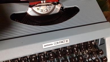 Macchina da scrivere Antares Compact 81 colore azzurro completa di custodia. Ottimo stato di conservazione e perfettamente funzionante. Prezzo trattabile.