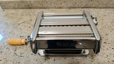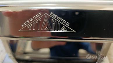 Macchina manuale per pasta Titania Excelisius 150 Realizzata inacciaio cromato. Ideale per ottenere sfoglie di pasta perfettamente lisce e omogenee, offre la possibilità di regolare lo spessore della sfoglia in sei diverse misure, da sottili a più spesse, con un'ampiezza di 150 mm. • Materiale: Realizzata in acciaio cromato, resistente e durevole. • Spessore regolabile: Sei spessori regolabili per sfoglie di 150 mm. • Taglio: Rulli di taglio per tagliatelle da 2 mm e fettuccine da 6,5 mm. • Facilità d'uso: Semplice da usare e pulire, con una struttura robusta e affidabile.