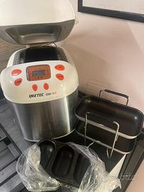 Macchina del pane imetec zero glu, perfettamente funzionante, usata poco per mancanza di organizzazione. Per persone pigre o troppo impegnate, da ottimi risultati anche con i preparati per il pane (usavo spesso Spadoni miscela pane nero, super). Grande soddisfazione mettere in tavola il proprio pane. Ci sono tutti glu accessori, i contenitori ler i panini mai usati e quelli per le ciabatte usati una volta. Compreso ricettario. Vendo anche perché ho cambiato casa e nella nuova cucina non c’è molto spazio. Scambio a mano.