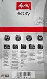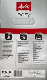 Svegliati con una deliziosa tazza di caffè gustoso e profumato, Usato solo 2 volte. Serbatoio d'acqua rimovibile con indicatore di capacità per 10 tazze (125 ml), temperatura di preparazione ottimale, caraffa in vetro Sistema antigoccia, compatibile con filtri 1x4, design compatto, pulsante di accensione/spegnimento illuminato, pratico vano cavi Portafiltro rimovibile, barattolo e coperchio lavabili in lavastoviglie, facile da pulire a mano, spegnimento automatico, 1050 W, progettato in Germania Contenuto: 1 caffettiera a filtro Melitta Easy II, nero, peso 1,32 kg, dimensioni (AxLxP) 29,5 x 17 x 22,4 cm, lunghezza cavo 90 cm