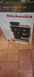 NUOVA!! ANCORA IMBALLATA!! La Macchina per caffè espresso semi-automatica con macinacaffè - Rosso mela metallizzato KITCHEN AID consente di esplorare il mondo dell'espresso in tutta sicurezza. Con questa macchina gli amanti del caffè potranno macinare i chicchi e creare tutte le tue bevande preferite a base di espresso. (Prezzo originale 799 euro) Semi-automatic-espresso-machine-with-burr-grinder-5KES6551-matte-black-on-countertop-surrounded-by-coffee-drinks Bella e robusta Con la sua struttura compatta rivestita in metallo, la macchina per caffè espresso semi-automatica con macinacaffè è progettata per abbinarsi perfettamente all'arredo della tua casa. La sua struttura, bellissima e resistente, assicura precisione e qualità per anni, ed è coperta da una garanzia di 3 anni e da 10 anni di riparabilità. La macchina è certificata da Quiet Mark come una delle più silenziose della sua categoria, contribuendo così alla tranquillità della tua casa. Tutto quello che ami dell'espresso da oggi si trova qui, sul tuo piano di lavoro.