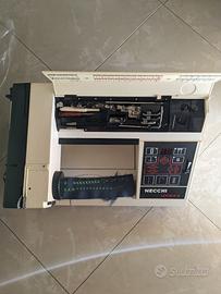 È una NECCHI marchio leader del mercato delle macchine per cucire al pari della Singer, è massiccia perché ha sia la struttura sia la meccanica interamente in metallo. Ha una comoda maniglia per essere facilmente trasportata, ha una copertura in similpelle e ha 48 punti di cui tanti ricami, tutti i punti sono impostabili in lunghezza e larghezza attraverso l'apposito menù con display, visibile nelle foto da acceso.