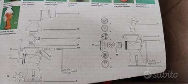 Macchina per fare la pasta manuale, anni'70, con tutti i suoi accessori e ricettario per l'impasto, per fare le tagliatelle, spaghetti, maccheroni, pasta sfoglia , gnocchi etc.