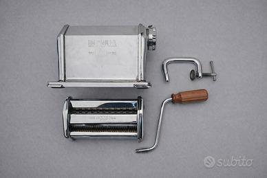 Vendo macchina per pasta Imperia Lusso SP150, Made in Italy - Torino, completa di manovella, morsetto da tavolo, accessorio taglio e scatola originale con libretti/garanzia d’epoca. Oggetto ideale sia per utilizzo domestico sia per collezionisti/amanti degli articoli vintage da cucina. Le condizioni sono buone, con normali segni del tempo e dell’uso visibili in foto. La scatola originale presenta usura e qualche segno evidente, ma resta un bel plus per chi cerca il set completo. Perfetta per preparare pasta fresca fatta in casa come tagliatelle, sfoglia e altri formati. Compreso nella vendita: macchina pasta Imperia SP150 manovella originale morsetto per fissaggio accessorio taglio scatola originale libretti/cartoncini originali Disponibile per ulteriori foto o informazioni.