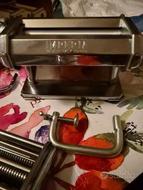 iconica macchina per la pasta fresca Imperia, un classico del design e della cucina italiana. Realizzata in solido acciaio cromato, molto più robusta e durevole delle versioni moderne.
