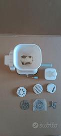 Questa macchina manuale a manovella, permette di realizzare numerosi tipi di pasta in casa, mentre i diversi dischi in dotazione permettono di utilizzare la macchina per tritare la carne, cruda o cotta e, per sminuzzare le verdure. Nuova mai usata in confezione originale, completa di pestello e accessori per pasta e carne (vedi foto )