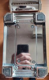 Bellissima e iconica macchina per la pasta manuale modello URANIA, prodotta dalla storica IPS (Industria Plastica Stampati) di Torino. Un vero gioiello del design industriale italiano, perfetto sia per l'uso in cucina (previa pulizia accurata) che come oggetto d'arredo vintage/modernariato. Caratteristiche principali: Marca: IPS Torino. Produzione: Made in Italy (Torino). Materiale: Corpo in robusto metallo cromato con inserti decorativi rossi e blu tipici dell’epoca. Serial Number: 01174 (inciso sul fondo). Accessori inclusi: Manovella originale con impugnatura in legno e morsetto di fissaggio al tavolo. La macchina si presenta in ottime condizioni estetiche, con cromature ancora brillanti e riflessi vividi. Segnalo, come da foto, una leggera ossidazione superficiale sui rulli dovuta al tempo, tipica di questi modelli vintage, che può essere trattata da esperti o collezionisti. La meccanica è fluida e funzionante. A differenza delle moderne macchine per pasta, la Urania di IPS Torino è rinomata per la qualità dei materiali e la sua stabilità. È un pezzo da collezione sempre più raro da trovare completo di tutti i suoi componenti originali. Dimensioni: circa 20x15x15 cm Peso complessivo: circa 5 kg