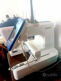 Macchina ricamatrice Brother VR con accessori ed inserti praticamente nuova completa di libretto istruzioni, accessori, tessuti e fili. Per chi interessato posso inviare altre foto. Macchina perfettamente funzionante ed esteticamente come nuova