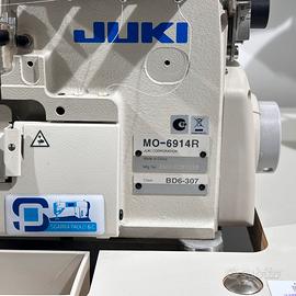 Juki MO-6914R macchina tagliacuce a due aghi, a 4 fili, tipo di punto 514, distanza aghi 2 mm, altezza sopraggitto 4,00 mm, trasporto superiore ed inferiore differenziale con regolazione micrometrica, velocità di cucitura fino a 7000 punti / min , corsa alta del crochet superiore.