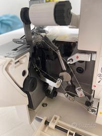 Tagliacuce 4 fili con differenziale. Regolazione della tensione semplice. Lunghezza punto e trasporto differenziale regolabili. Piedini facili da cambiare. Infilatura facile. Funzioni professionali. Coltello mobile superiore. Cuciture tubolari.