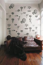 "Macchine volanti" iconico decoro composto da ventiquattro piastrelle in bicottura bianco extra lucido, formato cm. 20x20 (una serie completa a colori ed una seria completa in uno splendido bianco e nero). Una piccola ma significativa raccolta di frammenti dell'universo Fornasetti, dove inconsuete mongolfiere fluttuano leggere nei cieli della fantasia (collezione completa nella sua scatola originale, con ancora il sigillo di garanzia)