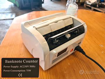 macchinetta conta banconote usata, si tratta di un contatore di banconote di marca Banknote Counter funzionante a 230v adatto per ambienti come: uffici, banche, negozi, etc. dimensioni: 24X30cm h16cm