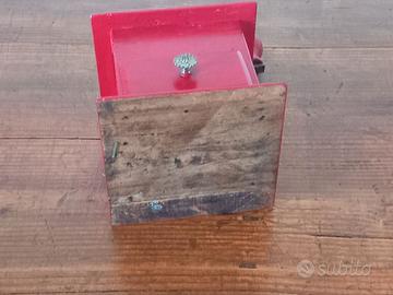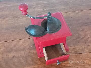 Macinino da caffè, funzionante del 1960, realizzato in legno dipinto di rosso; condizioni perfette; misure in foto.