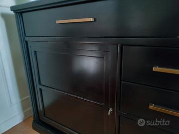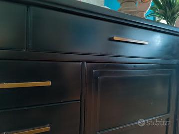 Vendo Madia del prestigioso marchio veneto Accademia del Mobile. Dimensioni: 180x55x90 Madia colore nero anticato, con maniglie e chiavi colore ottone. Tutto legno. Alcuni segni del tempo sulla parte bassa del mobile Prezzo leggermente trattabile