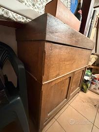 Madia interamente di legno con sportelli inferiori e la parte superiore che fa da grande cassettone alzandolo.