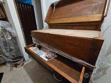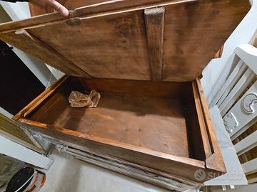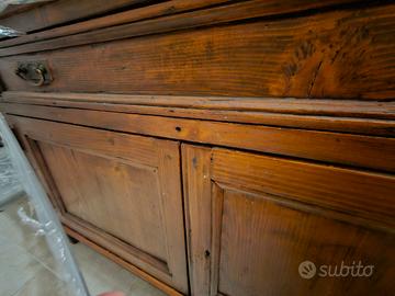 Vendesi bellissima madia rustica autentica, risalente alla fine dell'800 / primi del '900, in ottime condizioni di conservazione. Il mobile è un pezzo unico che unisce diverse funzioni tipiche della tradizione contadina: Parte superiore: Ampio vano con coperchio a ribalta (originalmente usato per impastare il pane o conservare la farina). Cassetto centrale: Spazioso, con maniglie originali in metallo lavorato. Parte inferiore: Doppia anta con ripiano interno, ideale come dispensa o credenza. Caratteristiche: Materiale: Legno massello (probabile pioppo/pino) con venature a vista. Stile: Arte Povera, perfetto per arredare casali, baite, B&B o per dare un tocco di calore a un ambiente moderno. Stato: Struttura solida e sana. Presenta i naturali segni del tempo che ne attestano l'autenticità. Dimensioni: Altezza da terra 1m Larghezza 1.07m Profondità 55.5 cm Altezza filo sopra cassetto da terra 62 cm Altezza apertura coperchio da terra 90 cm Stacco da terra 10cm Il mobile si trova a Villadossola (VCO). Ritiro a carico dell'acquirente (consigliato furgoncino o auto spaziosa). Prezzo leggermente trattabile dopo visione. No perditempo