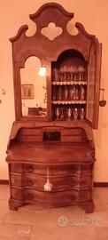 Mobile stile antico con vetrina a specchio e cassettoni. Ampio spazio per bicchieri e tovaglie. Cassettini e ribaltina, tutto in legno e radica